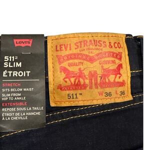Levis 511 Jeans Mens 36x36 Blue Slim Fit Tapered Leg Stretch Denim Casual *READ*
