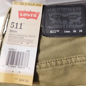 New w/tag, Levis 511 Jeans Size 12, Olive Green Pants, Slim Fit 26" x 26"