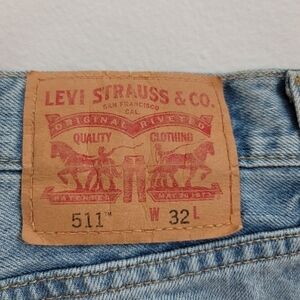 Levi's 511 Light Wash Distressed Denim Cut-Off Jean Shorts. Size 32. SAMPLE. Good used condition. No stains or holes. Light wash wear, pictured.