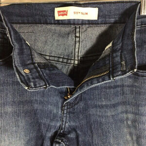 Levi’s 511 Slim blue denim jeans. Size 14. Made of a cotton / polyester / elastane blend. Button and zip closure. Traditional five pocket style. Great condition. No rips, holes or stains. The back label has been removed as shown in the photos. Smoke free home.
