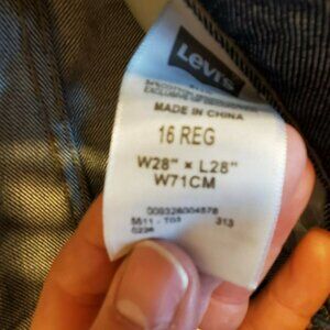 Levi's 511 Slim Boys Size 28x28 16 Regular Denim Blue Jeans 28x28 Size 16 Rise 9"  Waist 27"  Inseam 28