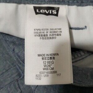 Levi's 511 Slim Shorts- Gray Bermuda Shorts. These are a stretch performance material with the classic back pockets and tabs. Front slit pockets and pouch/utility pocket on one side. Youth size 12, 26 inch waist. 17 inch approximate length. Excellent gently worn condition.