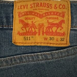 Levi's 511 Slim Tapered, Men's 30x32 Washed Blue Denim. Medium blue with distressed fading.
