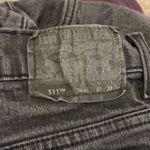 Levis 511 Boys Size 14 27x27 Slim Straight Jeans Black Faded Distressed Denim