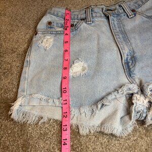 Levi's 512 Cut Off Shorts in a slim fit, size 9, with a 2-inch inseam. Light wash, perfectly distressed. They have some wear but so cute and tons of life left!