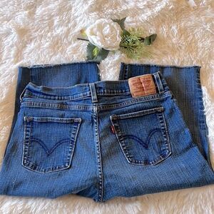 Lovely Levi’s 512 Perfectly Slimming cut offs in a medium wash. Stretch for that perfect fit. Flat lay measurements are in the photos and please see as they are part of the description.