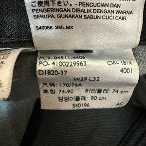 waist flat 14.5", outseam 41.5", inseam 32", rise 10", there is some light puckering otherwise good used condition
