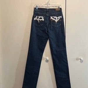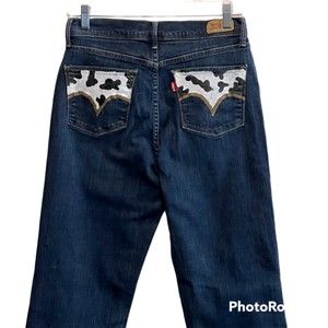 Levis 512 Womens Blue Denim Perfectly Slimming Cow Print Pocket Jeans Size 10L