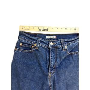 The product is a pair of Levi's 512 Women's Jeans in size 8M. They have a zip and button closure, with logo accents, and come in a classic blue color. fast Shipping measurments in the photos.