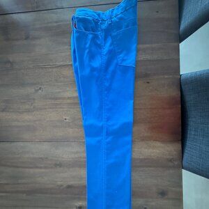 Vintage-y Levi’s 513 StaPrest. These are the ‘Superman’ pants. They’re electric blue, with the bright red pocket and waist liners. NOTE: the tag says 31/32, they are actually closer to 30/31 in actual size. Condition is excellent. No stains, no tears, no fading, no blemishes, no thin spots, no wear marks. Zipper functions perfectly. From a non-smoking home.