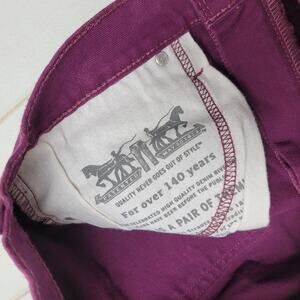 Nice Levis 513 "Slim Straight" jeans! Maroon/purple color, size 32x29. In good condition, just has a small stain near bottom hem.