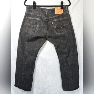 Levi's 514 33X25 Straight Leg Raw Hem Black Distressed Jeans EUC