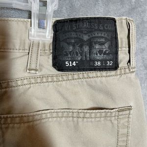 Levis 514 Jeans Size 38x31 Black Label White Tab Khaki Twill Pants Flat