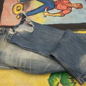Levis 514. Perfectly faded and softened to perfection. Soft blue and shredded