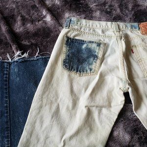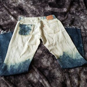 Unique Levis jeans in ombre bleach out style. Slim straight fit with 34" waist. Make a statement in these pants this season. Makes good streetwear