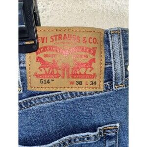 Levis 514 mens jeans denim 38 x 34. Style number 005141537. Excellent use preowned condition. Medium wash. Straight leg.red tab. luxury designer.