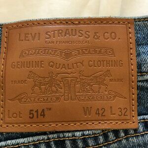 Levi's 514 Straight Jeans Men 42x32 Blue Mid Rise Stretch Medium Wash Cowboy