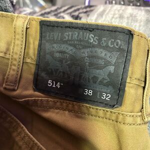 levis 514 jeans straight leg denim tan khaki mens size 38x32 five pocket casual classic wardrobe staple comfortable versatile