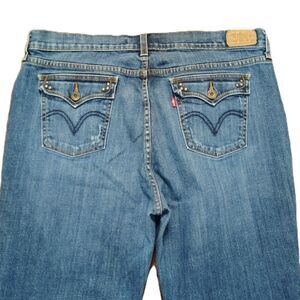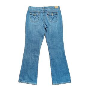 Levi's 515 Boot Cut Sz 16 Women's Mid Rise Stretchy Solid Medium Wash Jeans. 36" waist to rise, 11" rise, 31" inseam. Compare to $55 new! A snag on the front and a small hole on the back leg by the hem are pictured. Priced accordingly.