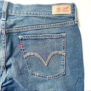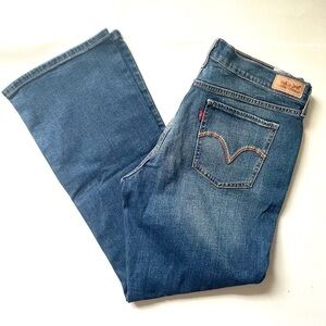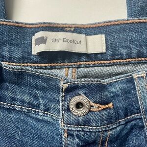 Medium wash denim Levi’s 515 Bootcut blue jeans.