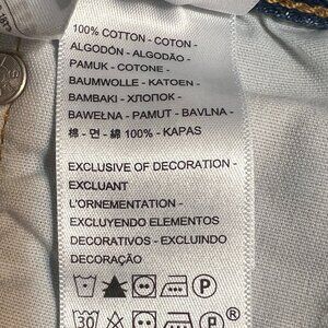 Pre-owned Levi’s 515 women’s high rise jean shorts. Button fly closure, 100% cotton, Water Less™ denim. Medium wash. Approx. flat waist. Classic vintage look. Gently worn, no flaws.
