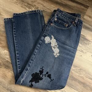 Levi’s 517 Bootcut Jeans 33x30 USA Made Custom Floral Patch Y2K Grunge