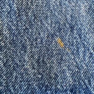 Pre-loved with expected distressing. Slight discoloration/small mark on lower right leg (see close-up photo). No holes. Priced accordingly.