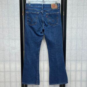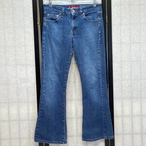 Levi’s 519 Low Rise Flare Jeans Faded Medium Wash Distressed Stretch Denim 7S
