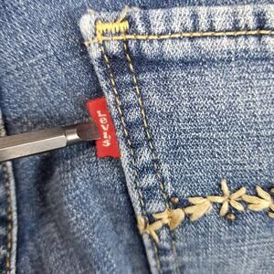 Levis 524 Jeans Womens 8 Medium Blue Too Superlow Flare Stretch Floral Embroidered