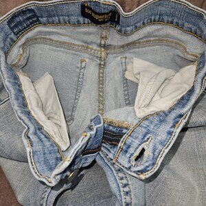 Levi’s 524 Super Low Jeans Women’s measurements below because the size tag has been cut out. There are signs of wear at the crotch area and ink spots on the left thigh. These jeans are well worn, and clean. Let me know if you have questions or would like further measures.