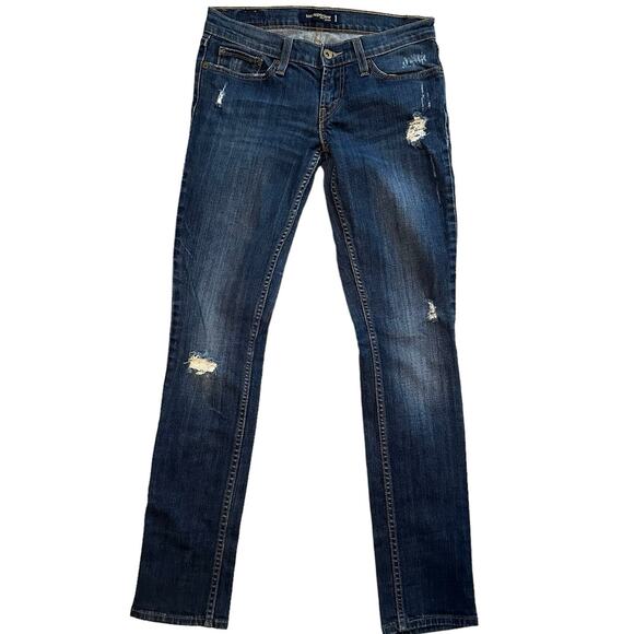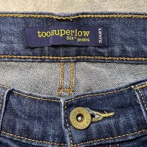 Levi’s 524 Too Superlow Jeans Women 3M Blue Stretch Dark Wash Denim Distressed
