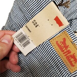 Levi's 524 Ultra Low Rise Skinny Leg Jeans Womens Blue White Striped Size 32 NWT.