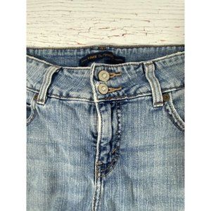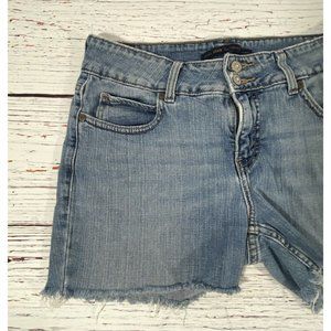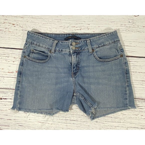 Levis 526 Jean Shorts Sz 4 Stretch Denim Booty Raw Hem Cut Offs 3” Inseam Light