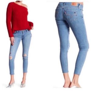 Levi’s 535 Super Skinny Jeans with Star Studs and Embroidered Hearts in size 28. Excellent like new condition, they have been washed but never worn. Second photo is stock photo. Traditional 5 pocket style with zipper and button front closure, raw hem. Please see photos for approximate measurements and details. Photos are part of the description, as everyone’s level of condition may vary. From smoke free and pet free home.