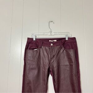 Levi's 535 Super Skinny Maroon Faux Leather Front Denim Pants Size 31