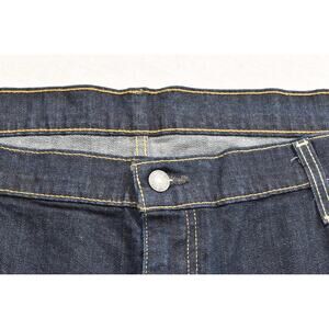 These Levi's 541 Athletic Taper jeans are a fantastic addition to any wardrobe, designed for a modern fit with extra room in the thigh. Crafted from a durable and comfortable cotton blend with a touch of elastane, they offer great stretch for all-day wear and ease of movement. The jeans feature a classic dark wash that is versatile for various occasions, from casual outings to a more put-together look. They have a zip fly with a button closure and the iconic Levi's branding, including the red tab on the back pocket and the classic two-horse patch on the waistband. With a Big & Tall size 46 waist and 30-inch inseam, these jeans are an excellent fit for a larger build, providing both comfort and style. The 'Water<Less' tag indicates that this item was made using less water in the finishing process, reflecting a commitment to sustainable production. These jeans are in excellent used condition with no visible stains, rips, or tears, and they are ready to wear. Please see the photos for a detailed view of the measurements and condition.