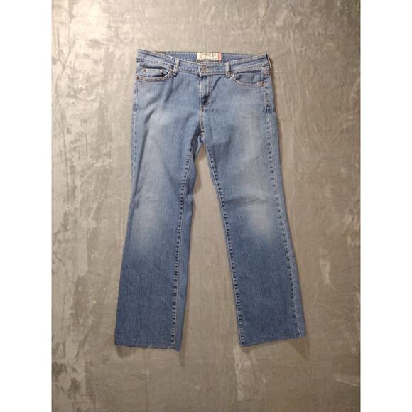 The Levi's 545 Low Boot Cut Blue Jeans for women in size 12M offer a relaxed fit with a low rise and bootcut style. Made of a comfortable cotton blend denim fabric with a solid light wash, these jeans feature a zip and button closure, along with accents like the Levi's logo. With a waist size of 34 inches and an inseam of 28 inches, these jeans are perfect for everyday wear with a touch of style and stretch. Ideal for a casual and comfortable look, these Levi's jeans are a classic wardrobe staple for any woman.