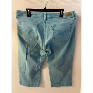 Levi’s 545 capris turquoise denim size 14. measures 36" waist, 18" inseam. 98 cotton.9.5" rise.  2 spandex.