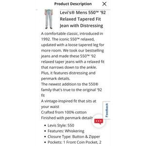 Levi’s 550 ‘92 Men's Relaxed Taper Fit Jeans With Paintmark Details Size 32x30