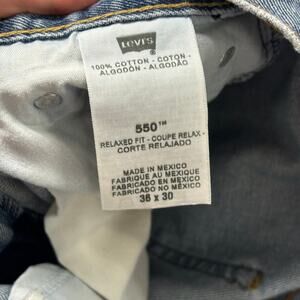 Levis 550 Faded Mid Wash Blue Mens 35x29 Relaxed Fit Straight Leg Jeans Red Tab Pre-owned condition, please note that the item has distressing present. worn in, zipper and button closure 5-pocket medium wash heavyweight classic casual streetwear denim