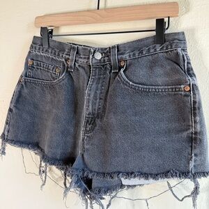 Levi's 550 High Rise Shortie Distressed BlackGray Denim Shorts Waist Size 34