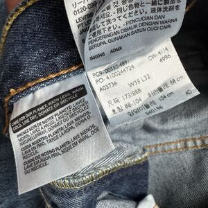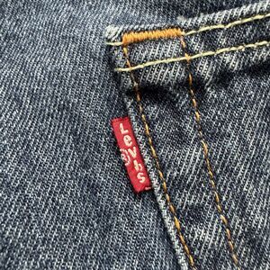 Classic Levis 550 Relaxed Fit Tapered Leg blue jeans in mens size W35 L32. Made from sturdy cotton denim with a high-rise fit and classic 5-pocket styling. Clean dark blue wash with Levis red tab and leather back patch intact. Pre-owned and in excellent condition with no holes, stains, or frays ready to wear.