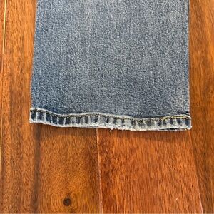 *small hole on bottom of left leg. Light fraying on back of legs (bottom). Fraying around corner of back pockets. Pictured.*