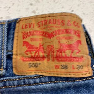 Levi’s 550 Men blue jeans. They are cute and in good condition. They are a size 38 waist and 30 length.