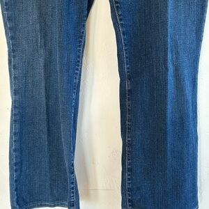 Experience timeless style with Levi's 550 Bootcut Jeans, featuring a medium-dark blue denim wash and a slight flare at the bottom. These jeans offer a classic fit that is both comfortable and versatile for any casual occasion. Sz 14 short