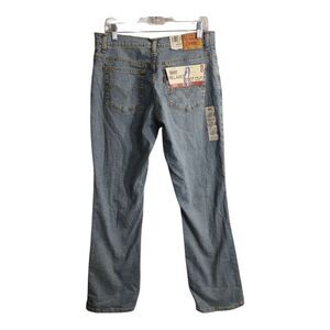 Levis Misses Relaxed Bootcut 550 in a size 12 LONG. Has some stretch and sits at the waist.