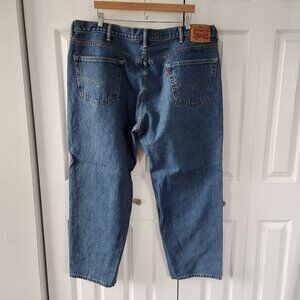 These jeans are by Levi's. They are the 550 Relaxed Fit in a medium wash blue denim. They have front and back pockets and a single button and zipper fly closure. They are in excellent pre-owned condition with no holes, rips or stains. Bundle with other items in my closet to get the most out of shipping!