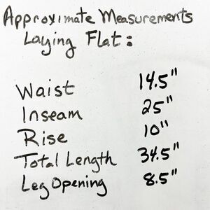 Tag says 28" inseam and waist but I have listed measurements that I took which differ. Please check carefully before purchase.