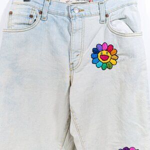 Levis 550 Relaxed Tapered Jeans Custom Embroidered Flower Smiley Face