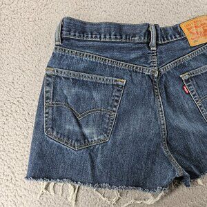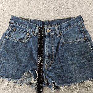 Levis 550 Shorts Womens 34 Blue Denim Relaxed Fit Cutoff Frayed Hem Casual